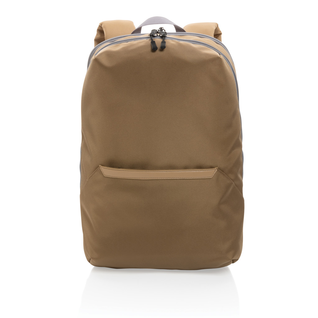 Look sharp in and out of the office with this sleek looking minimalistic design backpack. The backpack features a separate 15.6 inch laptop compartment and a zipper front pocket. The exterior material and lining is made with recycled polyester. With AWARE™ tracer that validates the genuine use of recycled materials. Each bag has reused 32.7 0.5L PET bottles. 2% of proceeds of each Impact product sold will be donated to Water.org. PVC free.