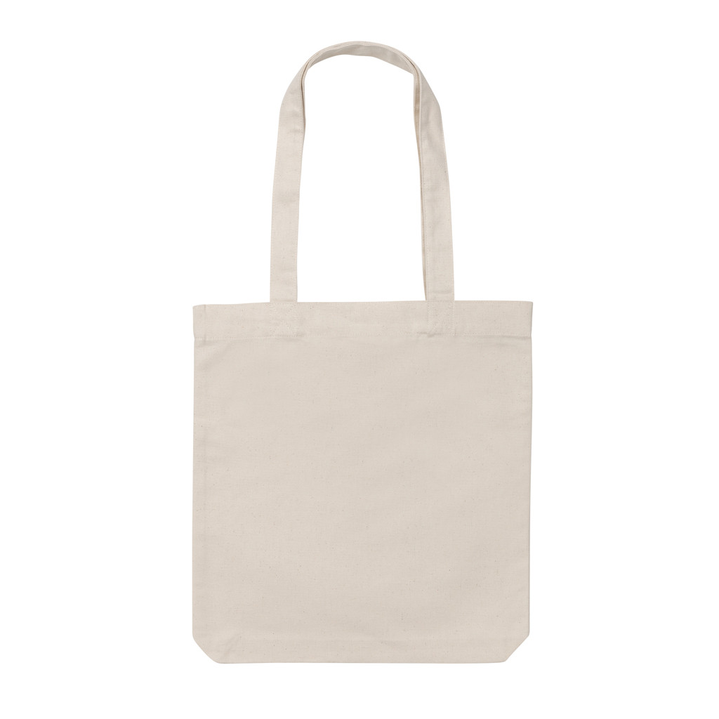 The Impact AWARE™ 285gsm recycled canvas tote bag undyed is the perfect way to carry your essentials wherever you go. This spacious tote provides sufficient space for all your daily needs. The recycled canvas is undyed and used in its raw form, without chemicals from dyeing or bleaching. With AWARE™ tracer that validates the genuine use of recycled materials. 2% of proceeds of each Impact product sold will be donated to Water.org. Composition 70% recycled cotton, 30% recycled polyester.