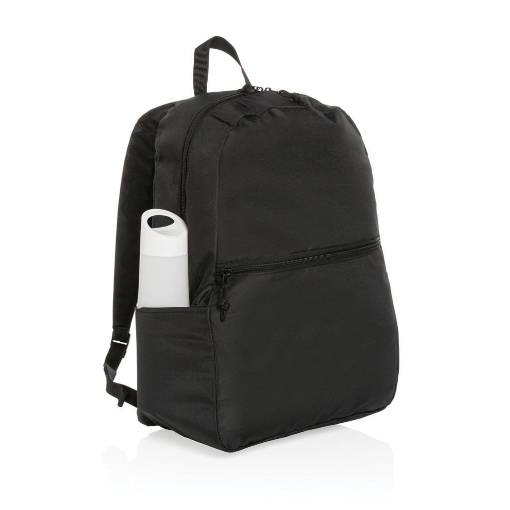 No greenwashing, but telling a true story about sustainability! This Impact 300D RPET backpack is made with AWARE™ tracer. With AWARE™, the use of genuine recycled fabric materials and water reduction impact claims are guaranteed, by using the AWARE disruptive physical tracer and blockchain technology. Save water and use genuine recycled fabrics. With the focus on water 2% of proceeds of each Impact product sold will be donated to Water.org. Keep it simple and stylish with this basic backpack. A perfect size for all your essentials and a convenient front zipper pocket. This backpack has reused 11,5 500ml PETbottles. Water savings are based on figures when compared to conventional fibre. This calculated indication is based on reliable LCA data as published by Textile Exchange in their Material Snapshots 2016.