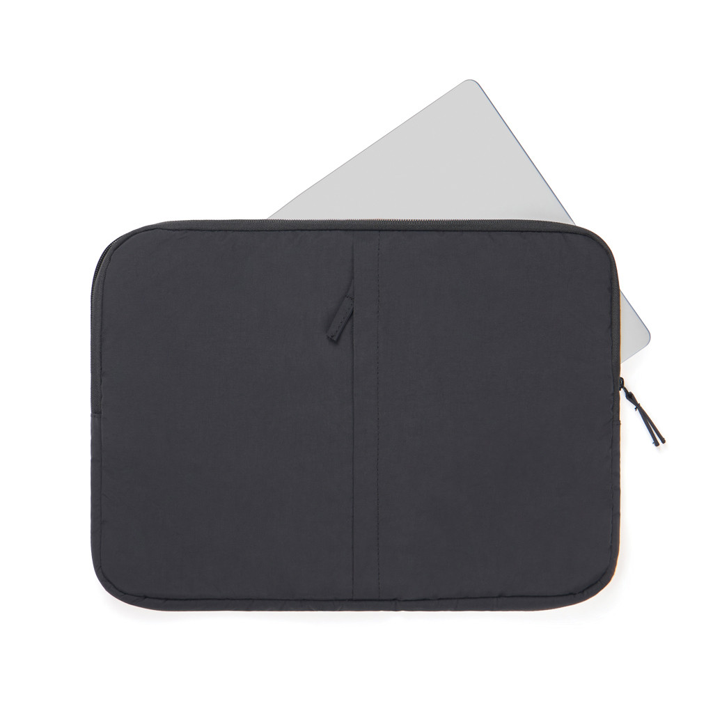 The KENTO Laptop Sleeve is made from super-light RCS-certified recycled nylon (228T) with a PU backing and finished with an RCS-certified recycled polyester 300T lining. Containing 55% certified recycled material, it combines responsible design with everyday durability. The secure main zipper compartment fits a 15.6” laptop and features 4 mm padding for reliable protection. A front zipper pocket keeps your small essentials within easy reach, making it perfect for busy days in the city, at school, or at work. Lightweight and functional — built for a young, modern lifestyle.