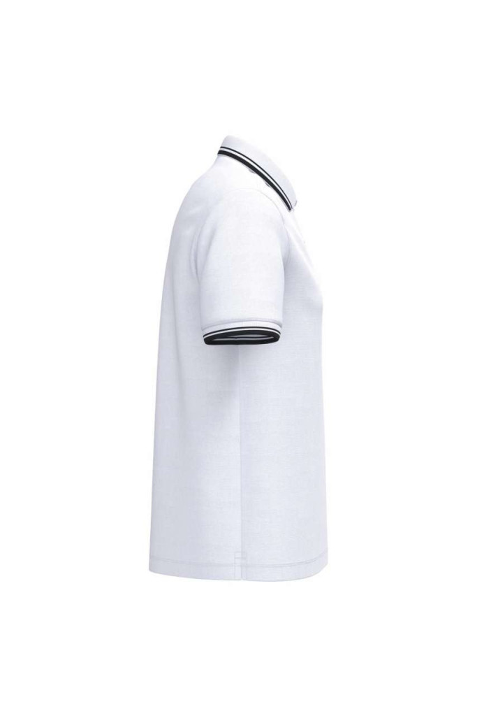 - Rib finishes with contrasting trim at the neckline and cuffs