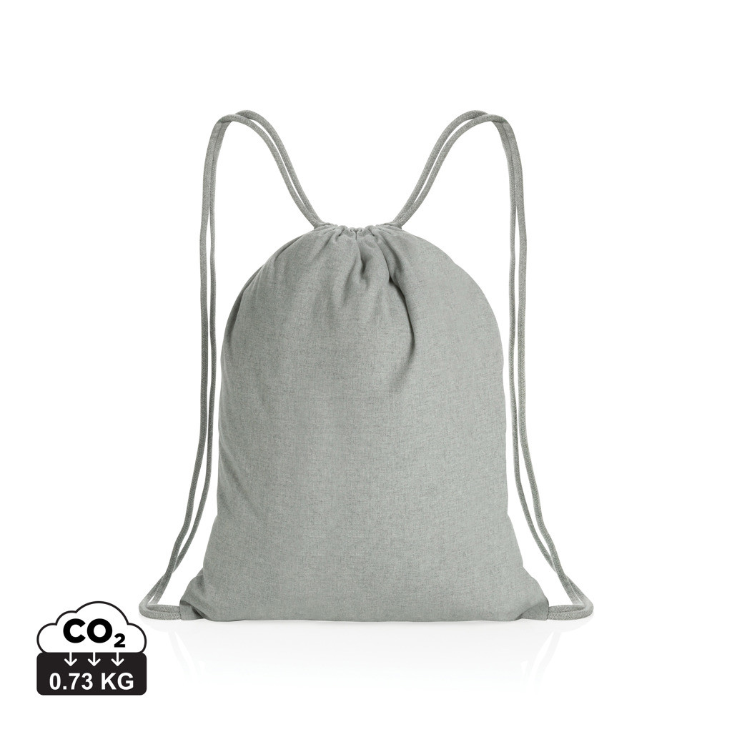 Tell a true story about sustainability and wear it with pride! This versatile 145g recycled cotton drawstring backpack is embedded with AWARE™ tracer technology. Wear it to the gym or just for everyday use. With AWARE™, the use of genuine recycled fabric materials (70% rcotton and 30% rpet) and water reduction impact claims are guaranteed. Save water and use genuine recycled fabrics. If you choose this item you save between 562 and 641 litres of water depending upon the colour. With the focus on water, 2% of proceeds of each Impact product sold will be donated to Water.org. Water savings are based on figures when compared to conventional fibre. This calculated indication is based on reliable LCA data as published by Textile Exchange in their Material Snapshots 2016.