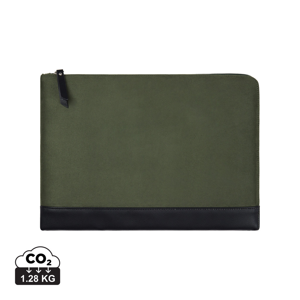 Protect your laptop in style with this sleek padded sleeve. Features an extra long zipper closure for easy access. Inside, a convenient pocket for smaller items. Please note: Display dimensions may vary from laptop dimensions. Marlow series crafted from recycled faux suede with PU details and lining in recycled polyester. Finished with sleek silver hardware. Certified by RCS (Recycled Claim Standard), RSC certification guarantees that the entire supply chain of recycled materials is certified. The total recycled content is based on the overall product weight. This product contains 49% RCS certified recycled polyester and 3% RCS certified recycled polyurethane.